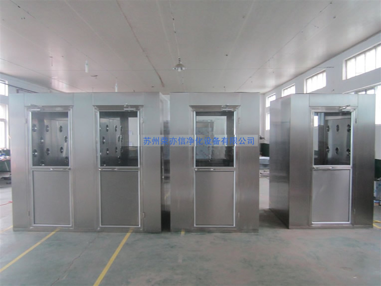不銹鋼風(fēng)淋室: 不銹鋼風(fēng)淋室 它是人員或貨物進(jìn)入潔凈區(qū)由風(fēng)機(jī)通過風(fēng)淋噴嘴噴出經(jīng)過高效過濾的潔凈強(qiáng)風(fēng)吹除人或物體表面吸附塵埃的一種通用性很強(qiáng)的局部凈化設(shè)備。
